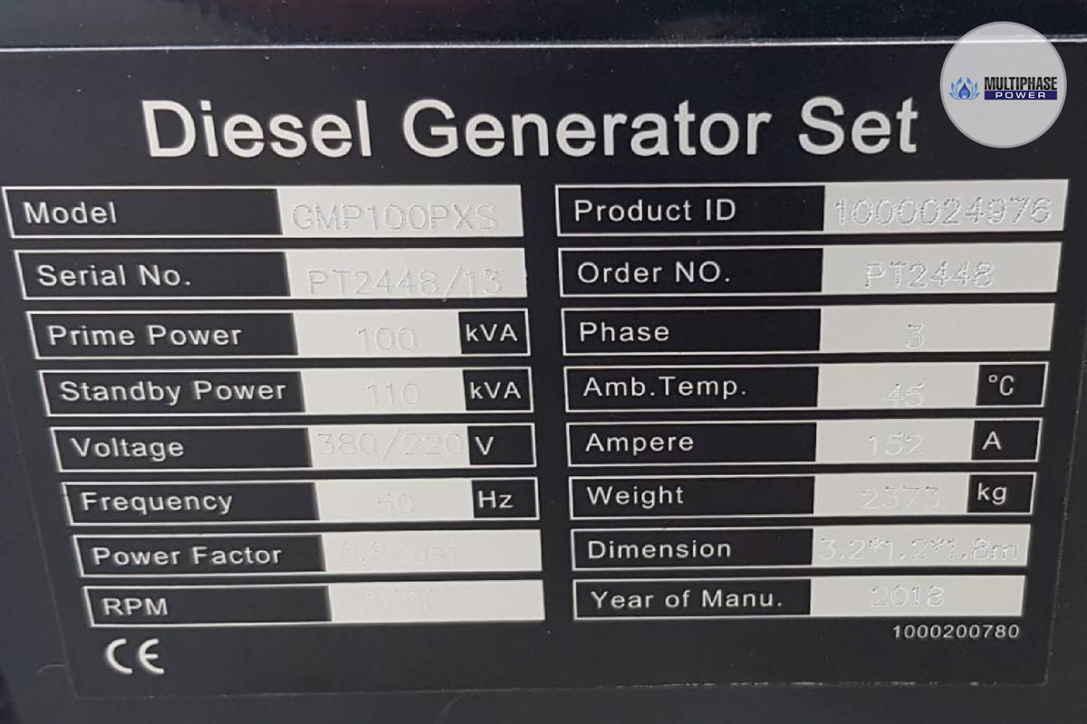 Model: GMP100PXS (100 kVA)