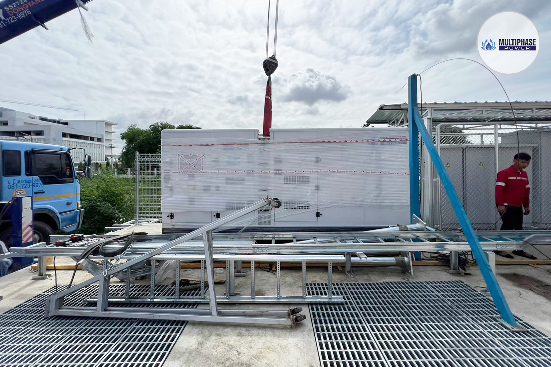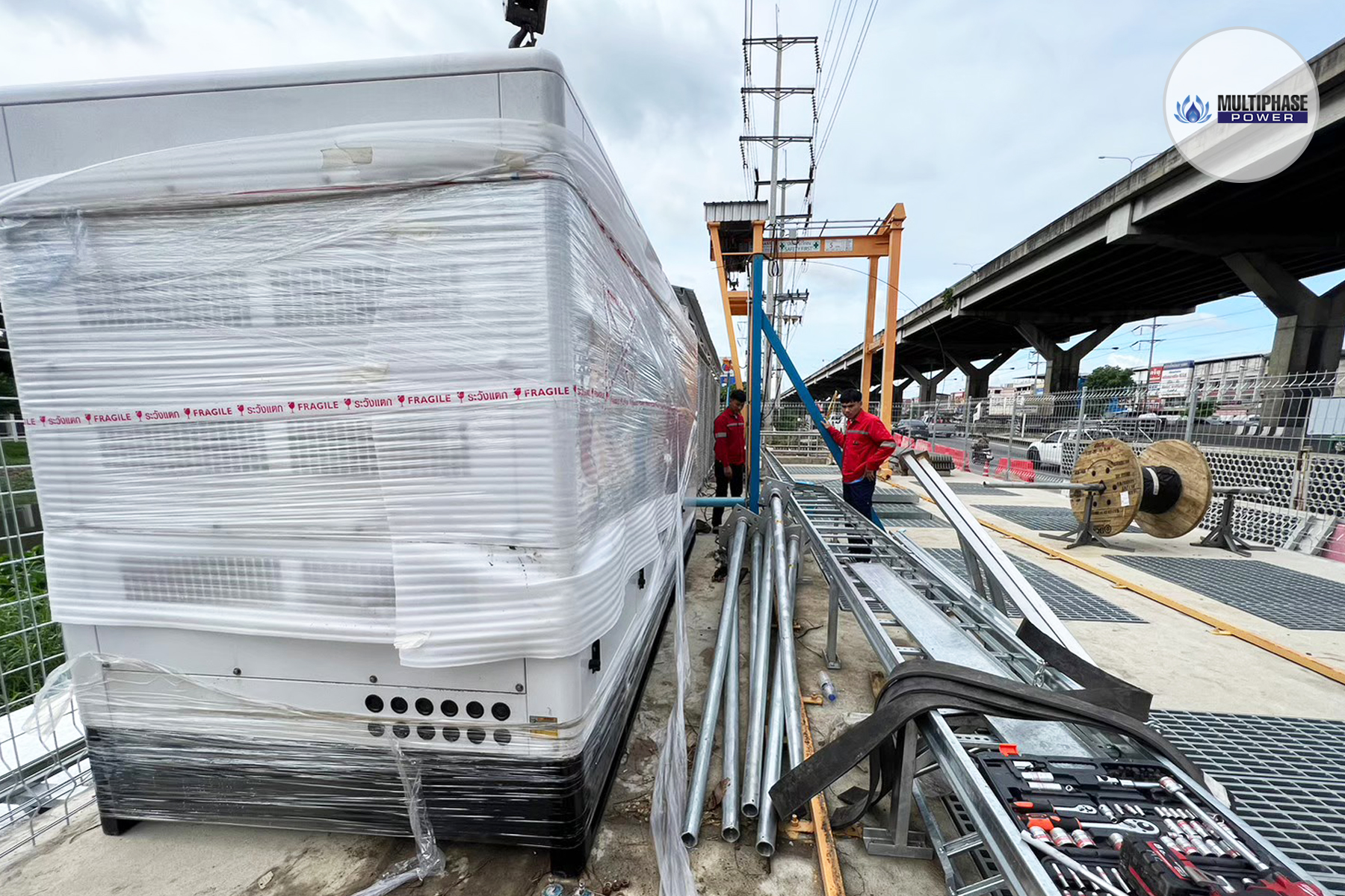 Scope of Work: Supply of a 550 kVA silent-type diesel generator set from Multiphase Power for the Water Bank Project at Vibhavadi-Rangsit Section 3, for water management infrastructure.