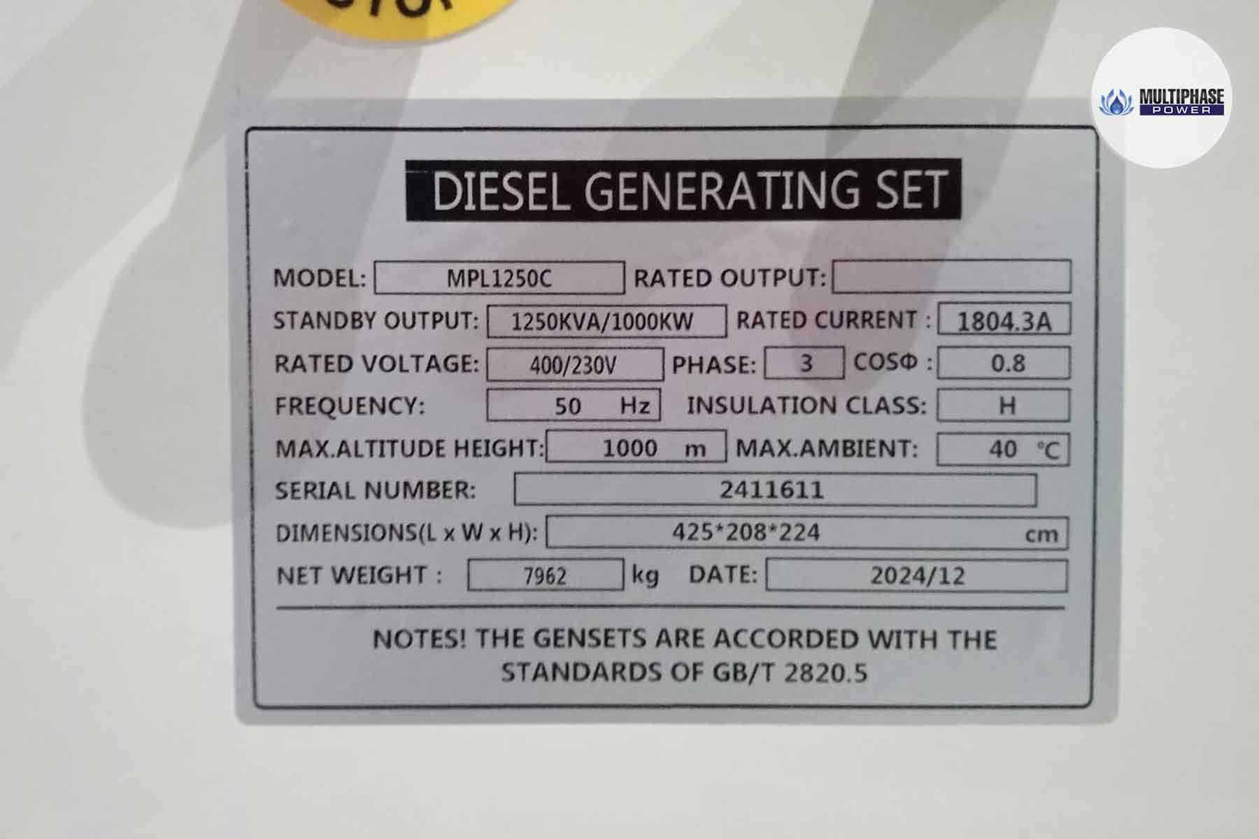 Brand: Multiphase Power (Open Type Generator)