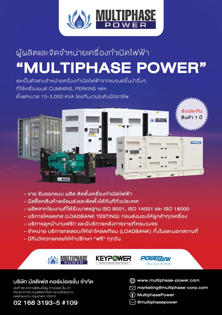 Each unit features smart controllers from Deep Sea Electronics (UK) for reliable automation and protection. With proven performance and global standards, Multiphase Power delivers energy solutions you can depend on—anytime, anywhere. For more information, call 02-168-3193-5 #109 and Hotline 091-187-1111 or Line ID: @multiphasepower