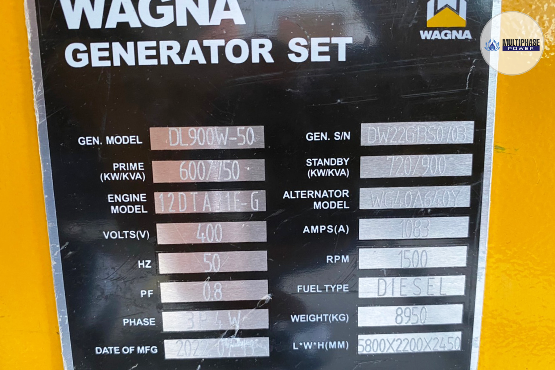 รุ่น (Model): DL900W-50P (900 kVA)