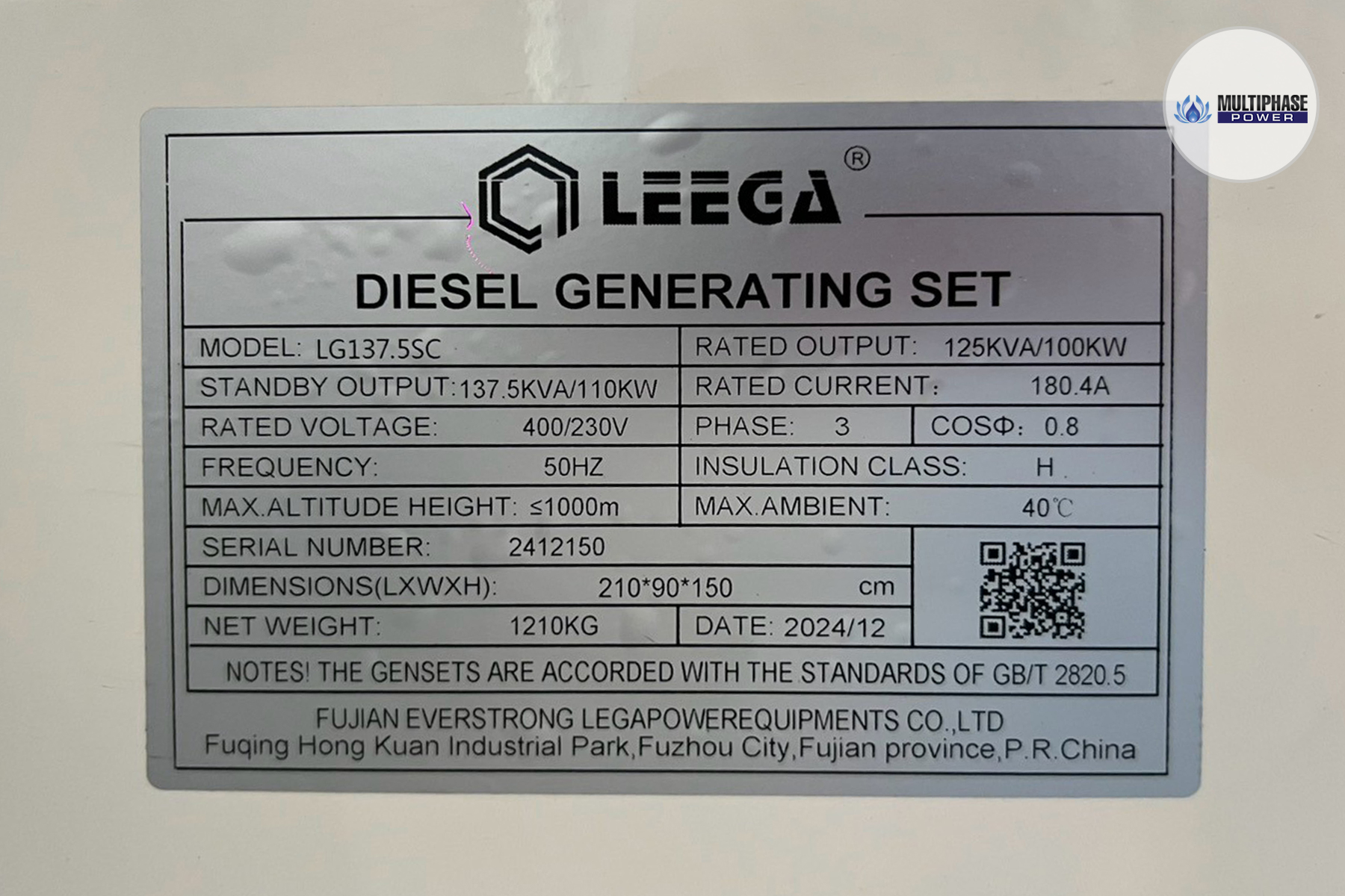 รุ่น (Model): LG137.5SC (137.5 kVA)