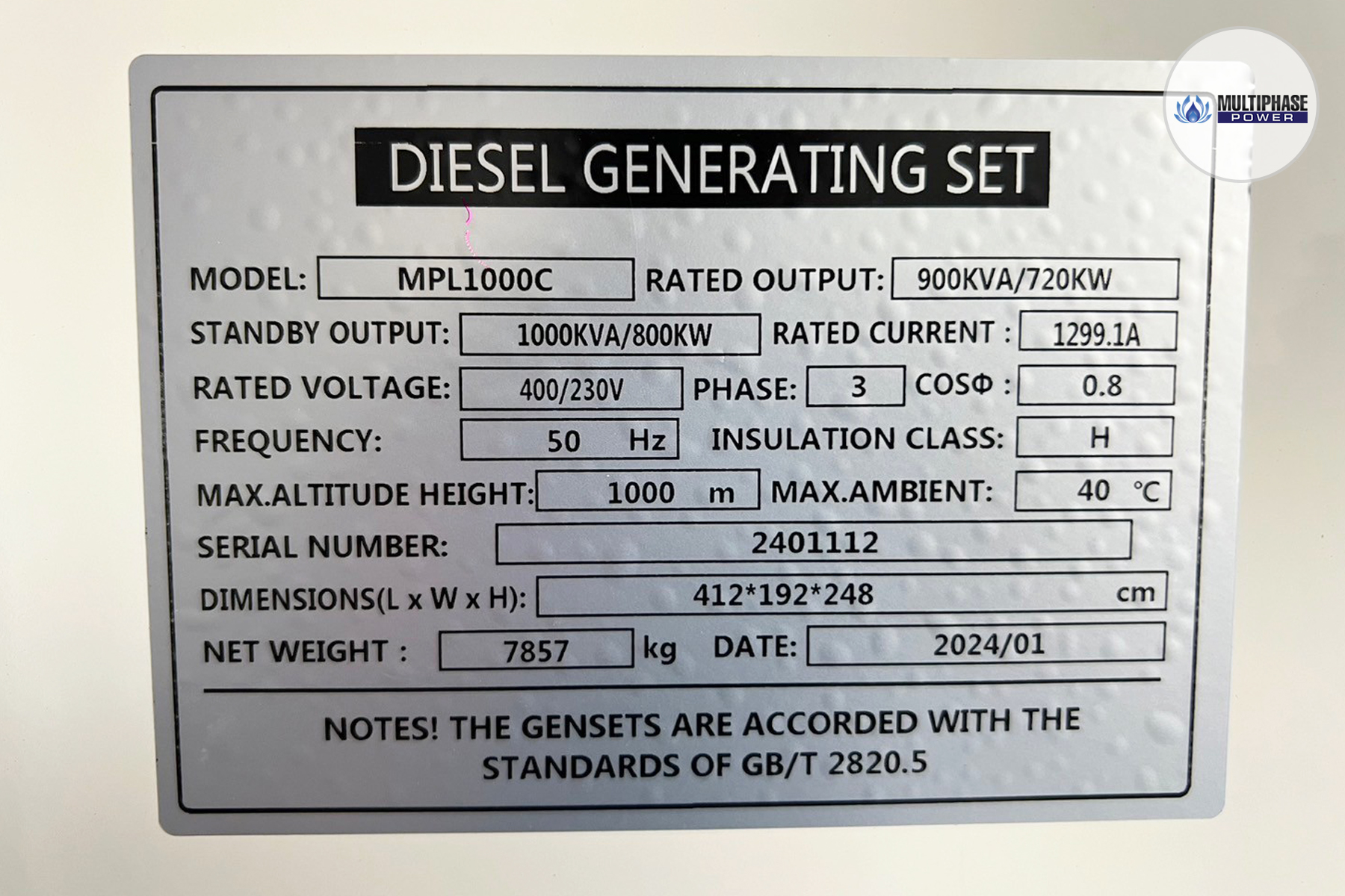 รายละเอียด (Scope of Work): จำหน่ายและติดตั้งเครื่องกำเนิดไฟฟ้าดีเซล ขนาด 1,000 kVA แบรนด์มัลติเฟส พาวเวอร์ (Multiphase Power) เพื่อรองรับระบบไฟฟ้าสำรองสำหรับการใช้งานที่ต้องการความต่อเนื่องและเชื่อถือได้
