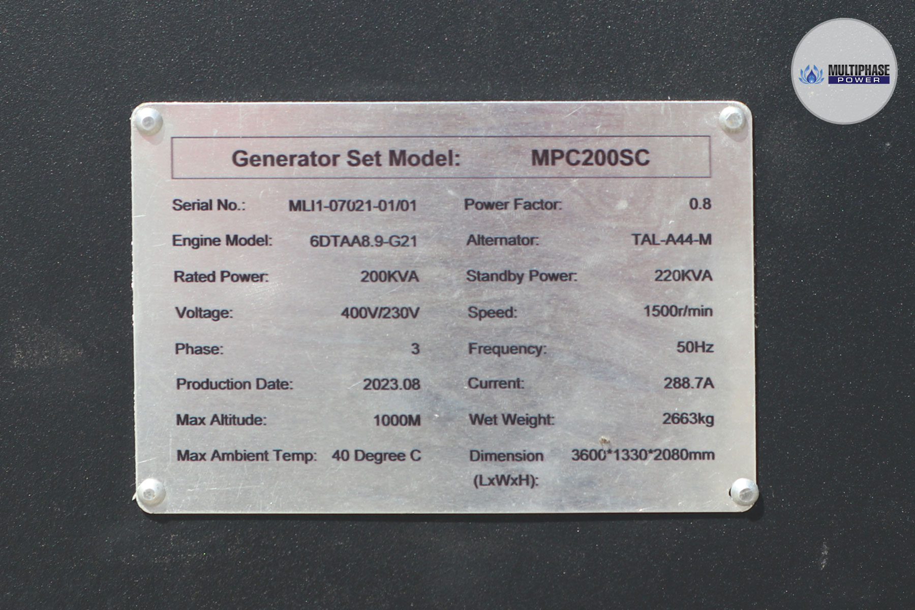 เครื่องกำเนิดไฟฟ้า Multiphase Power รุ่น MPC200SC
